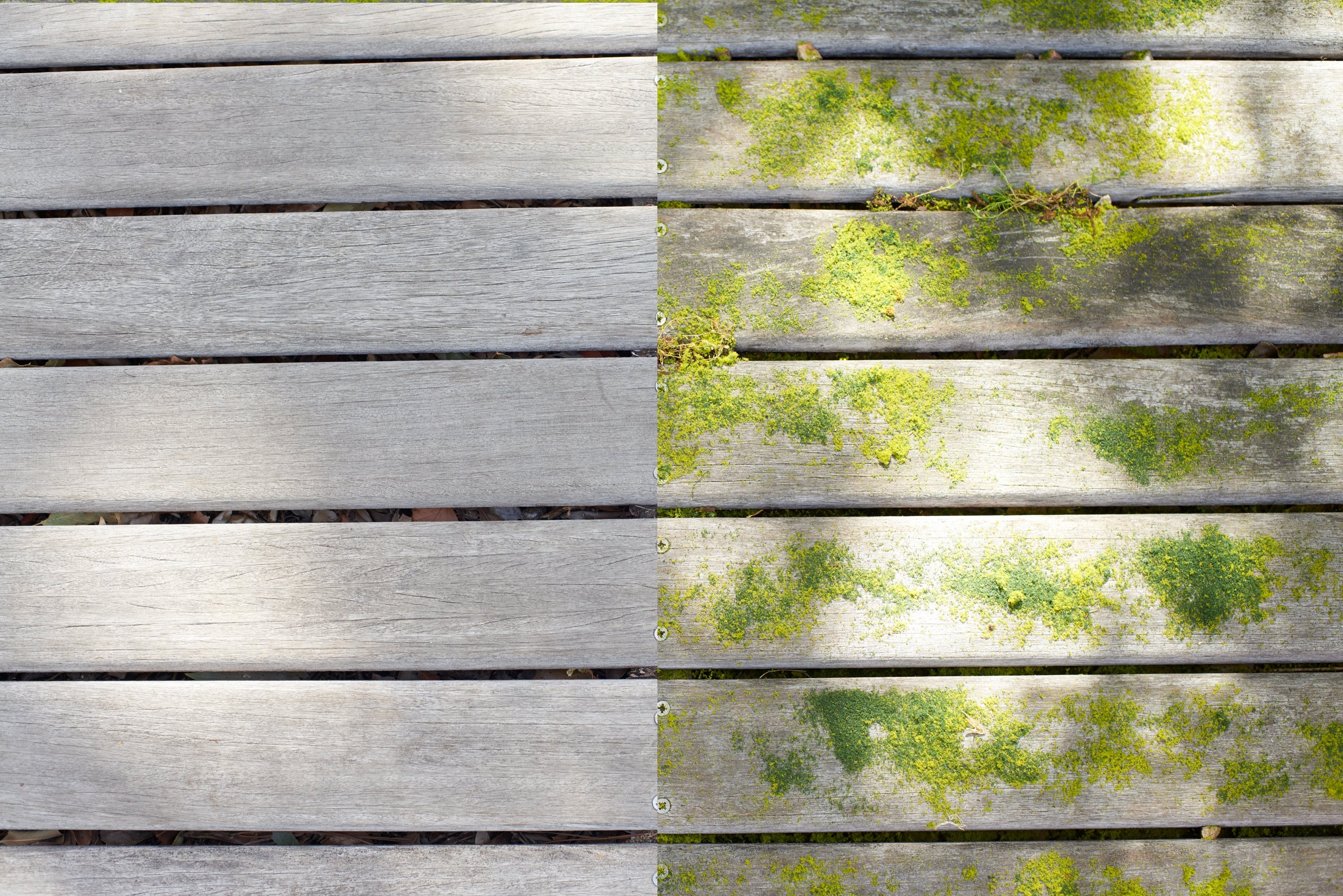 Not every garden has a patio; wooden decking is a practical and attractive alternative. When it comes to considering how to clean an outdoor deck, a gentler approach must be used, given that wood is softer. Here's how to clean and remove algae from your decking: 1. Remove any pots or ornaments. 2. Apply a weedkiller if necessary. 3. Sweep away dust and debris. 4. Evenly distribute an algae- and moss-removal solution or create your own at home with a gallon of water and one cup of white vinegar. Leave it to soak for 15 minutes. 5. Use a power washer on the lowest setting to rinse off the solution and any remaining algae or dirt. Allow plenty of space between the nozzle and the decking, and use it at an angle to avoid eroding the wood itself. Alternatively, you could use a patio brush with a specific wood cleaning attachment. 6. Allow your decking to fully dry and then treat it with an oil to protect it against the weather and future mould.