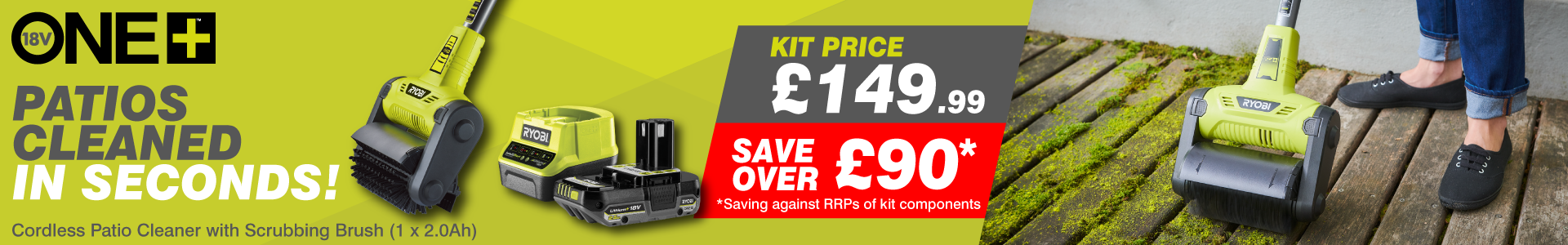 The RY18PCB-120 is a starter kit which includes the ONE+™ Patio Cleaner, 2.0Ah battery and charger