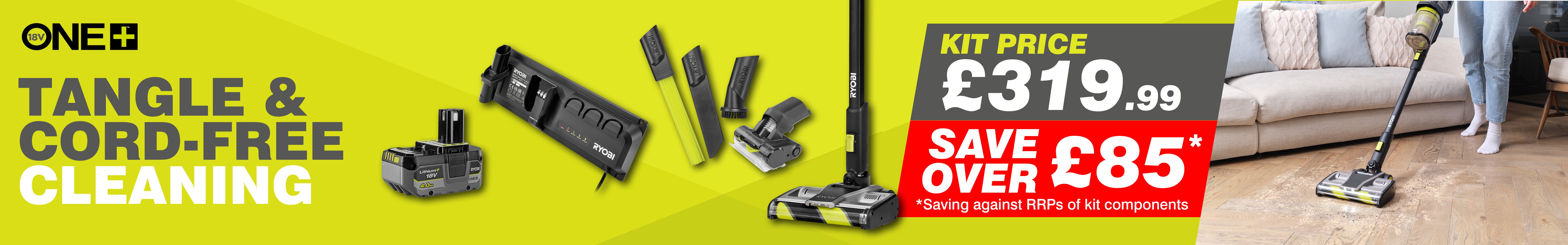 This 18V ONE+™ Brushless Anti Tangle Stick Vac kit includes 1 x 4.0Ah Lithium+ Battery.