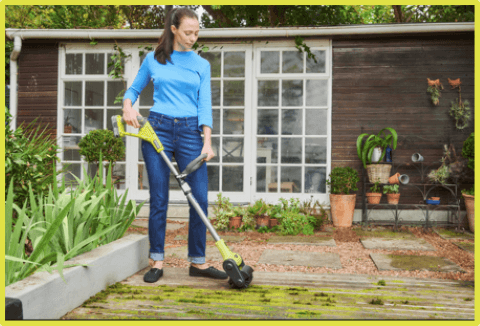 Use the scrubbing brush to effortlessly clear wooden decking, cobblestone pathways, and many other patio surfaces. Unlike a traditional scrubbing brush, users can simply glide the patio cleaner across the surface and the 18V motor will rotate the hard-bristled roller brush to remove any moss, weeds or dirt that has gathered on the patio surface. This prevents fatigue from manually scrubbing and cleaning on your hands and knees.