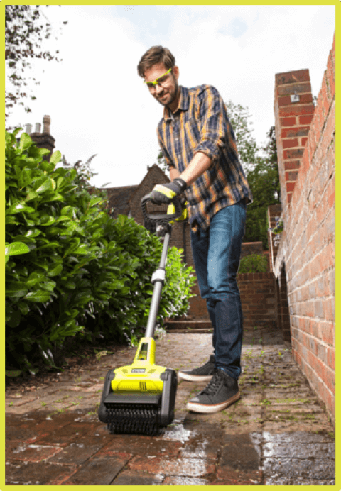 Quickly remove moss, weeds, and dirt from your patio with RYOBI’s 18V cordless patio cleaner. Designed to take the effort out of cleaning, the patio cleaner uses a high-speed scrubbing brush attachment to revive any patio or decking surface.