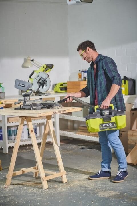 RYOBI’s NEW 18V Cordless Wet and Dry Vac is great for workshop cleaning and can be easily wheeled out to use in your car.