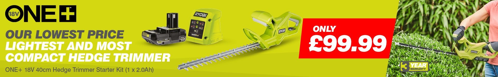 As part of the Ryobi ONE+ system of over 200 cordless tools for the home, garden, automotive, crafting and much more, the Ryobi 18V ONE+™ RY18HT40A-120 Cordless 40cm Hedge Trimmer is supreme value and perfect for maintaining and shaping small to medium hedges such as laurels and evergreen shrubs.