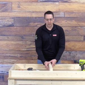 In this step you will build the identical upper and lower box frames including the middle support pieces on each. (Helpful hint: pre-drill holes with countersink bit to avoid wood stripping) Lay out the frames to visualize how you will assemble it. Using a drill driver, fasten the two (B) on the inside of the two (A). You will use 2 screws for each side/fastening point. Once your frames are securely assembled, use the tape measure to find the center of the frame (should be at 23-7/8"), mark this spot. Pre-drill holes and then fasten (D) halfway between the two (B).