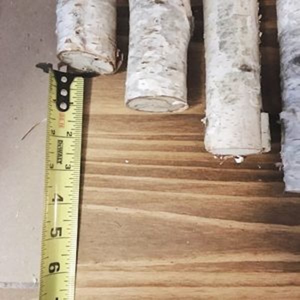 Gather a bundle of birch branches and trunks. Line up the branches and twigs from thick to thin. Stagger the branches and twigs to mimic the outline of a Christmas Tree.