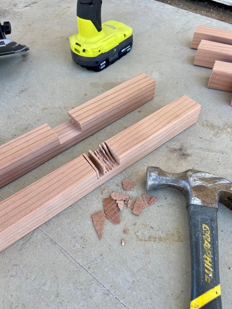 Begin by cutting your 47mm x 50mm material into 2 pieces approx. 26cm in length. These will make the center part of the stand. And 4 leg pieces approx. 36cm in length. NOTE: the 4 leg pieces can be longer or shorter depending on your preference.