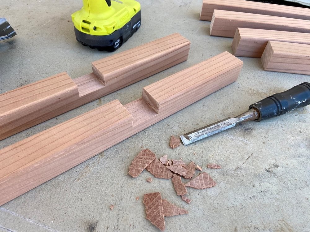 Now set the depth of your circular saw at just 1.9cm. Using the saw make several cuts in parallel on the ‘marked’ sections on your 26cm pieces. (This is from step 1)