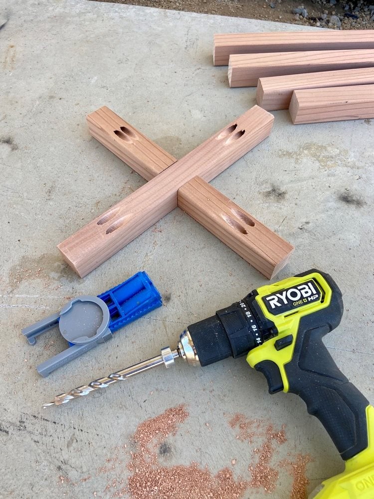This pot stand is not only a simple and easy project, but also one that will add a bit of interest and depth to your potted plants! The only tools you’ll need are a circular saw, a drill and a pocket hole drill guide!
