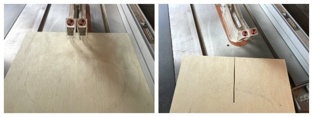 Front panel cut out, can use a table saw to ensure a perfectly straight line for the ornament “string”.